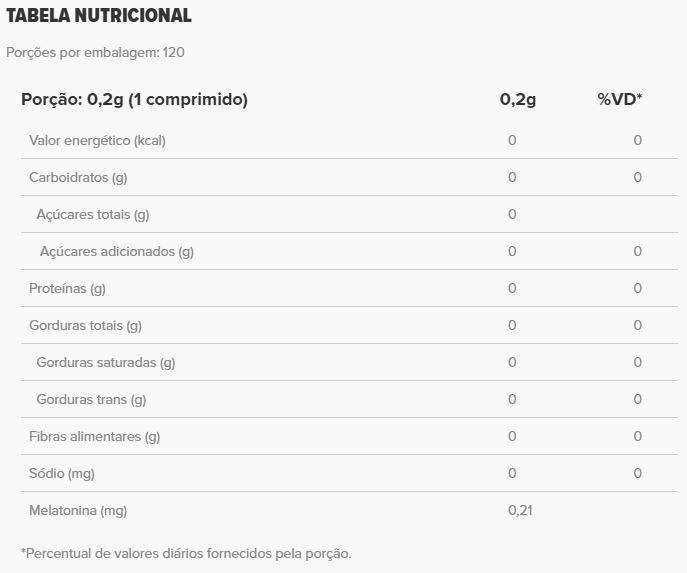 Melatonina (Micro-SR®), edulcorantes xilitol, eritritol e glicosídeos de esteviol (estévia), antiumectantes estearato de magnésio, celulose microcristalina e dióxido de silício, glaceantes hidroxipropilmetilcelulose e cera de carnaúba e aroma natural de menta.